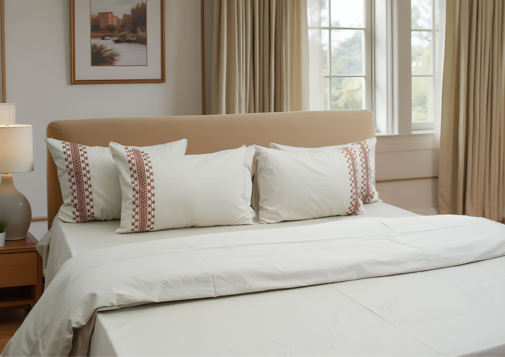 “Experience the perfect blend of elegance and comfort with our premium cotton bedsheets. Expertly woven with high thread counts for a luxuriously soft touch, our collections are designed to enhance your bedroom décor and ensure a restful sleep, night after night.”