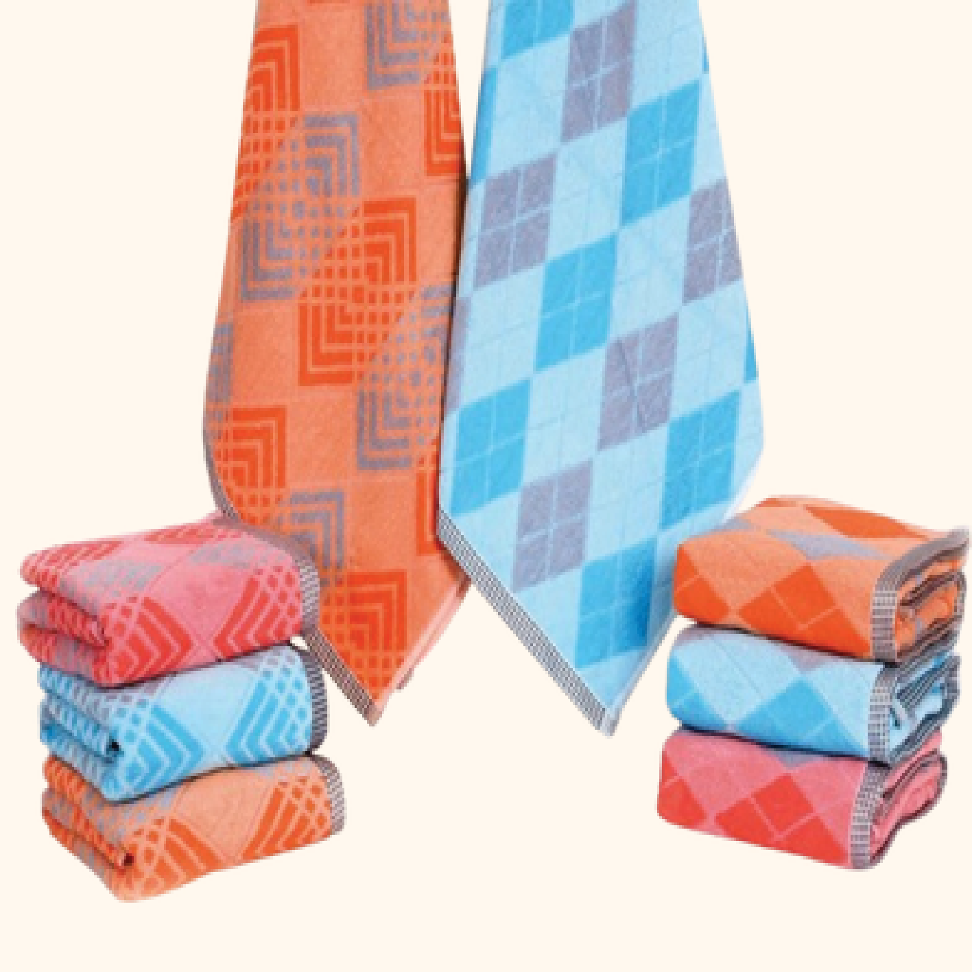 - Bath towel :- 75 X 150 CM (Thread Count: 30 – 60)